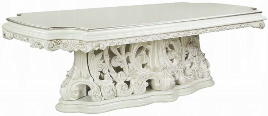 Exuding elegance and refinement, the Adara dining table is designed after the elaborate Rococo style. The single pedestal base is elaborate and commands the attention of everyone. Leave guests stunned with its beauty. Floral and leaf motives make up the carved designed details of the table.Read More