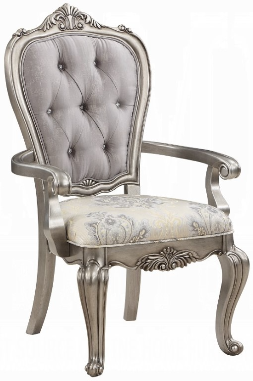 Introducing our Ariadne armchairs that are sure to captivate you with their intricate scrollwork and luxurious antique platinum finish. These stunning dining chairs have beautifully crafted scroll legs that make a grand statement on their own.Read More