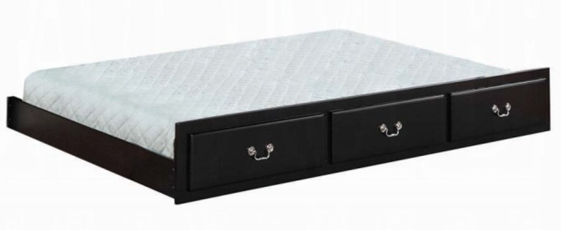 The Bailee trundle will be a great addition to the Bailee daybed. This black trundle features faux drawers with shapely molding and clean lines. With this addition, you can easily accommodate an overnight guest, with a functional twin bed, or go mattress free creating a drawer for extra storage.Read More