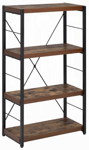 The Bob bookcase is the third additional to this office collection. It features 4 shelves on being the top and "x" back stretcher to tie into the look as well as create a sting sturdy book case. Like the desk, weathered oak is combined with black metal to create a pleasing combination.Read More