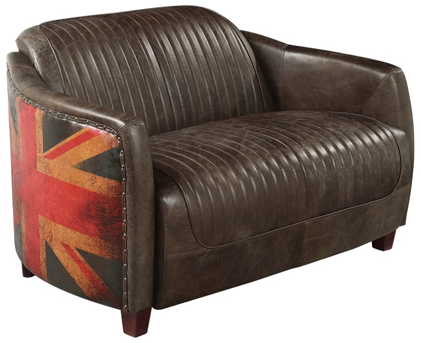 Our famous Brancaster collection now includes a Union Jack-printed loveseat. It is made from high-quality top-grain leather that will withstand years of use. The weathered effect makes the pieces look well-loved and inviting. Wooden feet and an inner frame make for a sturdy piece.Read More
