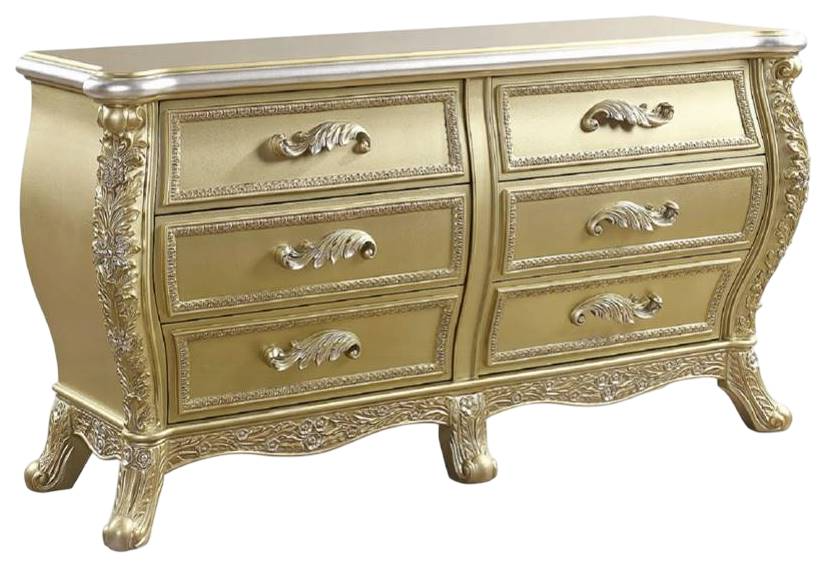 Majestic and regal, the Cabriole dresser delivers on this promise. This superb chest features six drawers and vine-shaped pulls to up the glam. It offers felt-lined drawers with self-closing glides for an elevated touch. This refined piece is elegantly adorned with floral and leaf motifs that are sure to leave a lasting impression.Read More