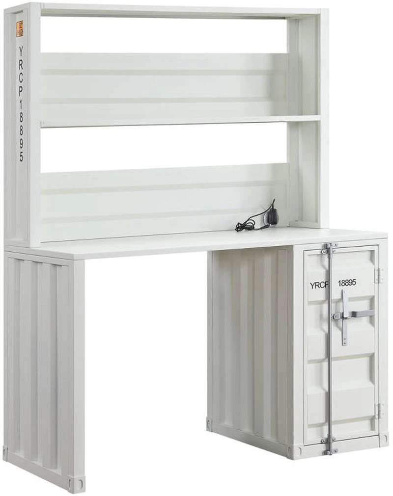 The Cargo computer desk and hutch have an industrial look and ample space that makes it perfect for your dorm, bedroom, or home office. This computer desk is constructed of durable iron metal in a crisp white painted finish. It has a top compartment as well as one storage base.Read More