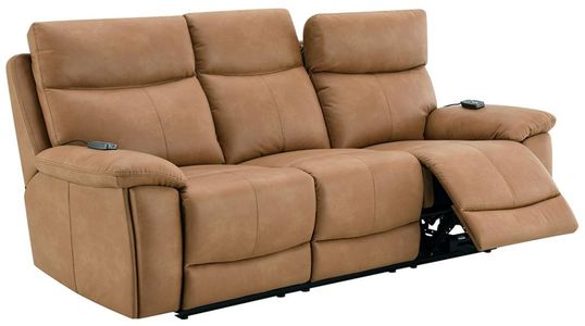 The Chavis power reclining sofa with power headrest features rich brown leather-aire upholstery, smooth power reclining and adjustable headrests for personalized comfort, built-in USB ports, plush cushions, and supportive pocket-coil seating for a stylish lounge experience.Read More