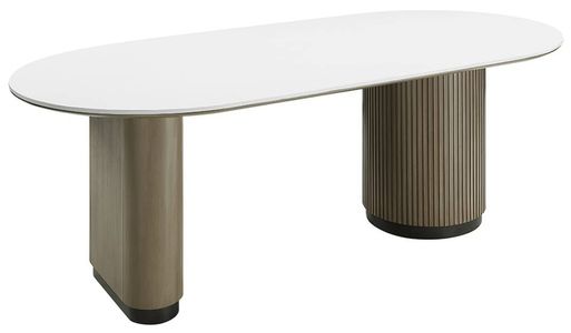 The Clayten dining table features a crisp white tabletop paired with a warm light oak base, offering clean modern lines, sturdy craftsmanship, and subtle contrast that enhances contemporary dining spaces with fresh, timeless style.Read More