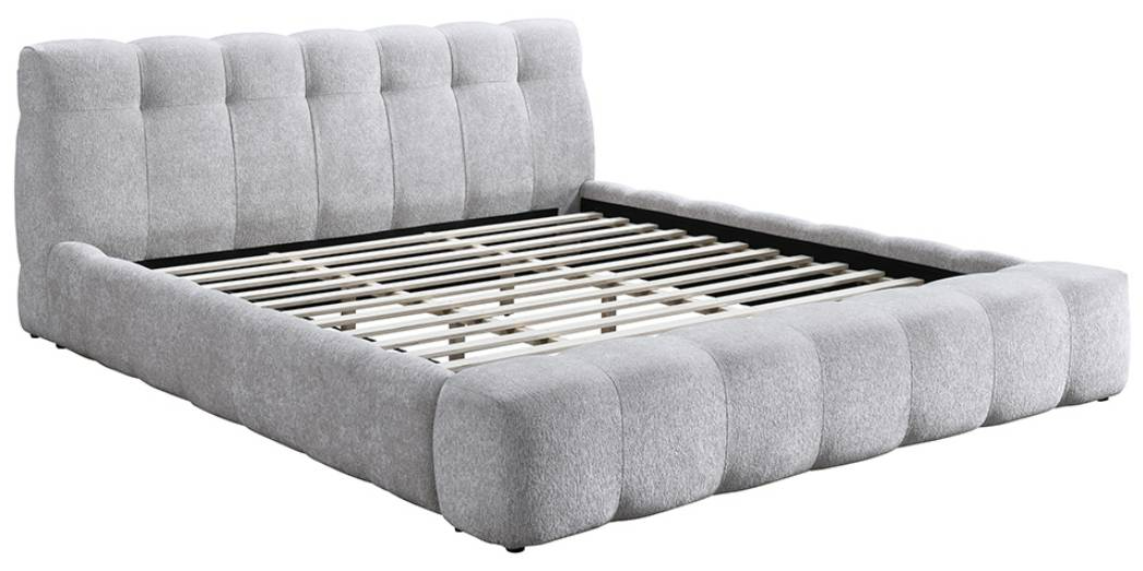 The Hannah queen panel bed features soft gray chenille fabric upholstery, a padded headboard, and a sturdy construction. Its transitional design adds cozy, contemporary elegance to any bedroom.Read More