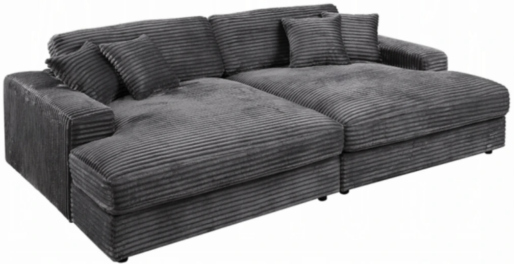 Hilde collection sectional sofa exudes modern elegance and wrapped in luxurious cordoury. The tight seat cushions and loose back cushions for the perfect balance of support and the wooden inner frame ensures durability. Ideal for contemporary living spaces, it enhances your home with its sophisticated design and sumptuous comfort.Read More