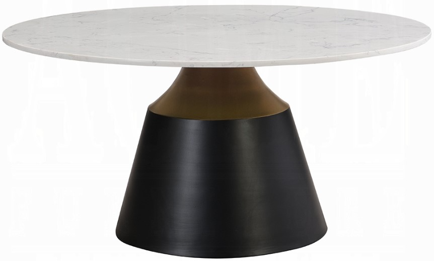 The ACME furniture Jaramillo coffee table blends luxurious design with functional form. It showcases a lustrous engineered marble top resting on a dramatic flared pedestal in a bold black (accented with bronze) metal base.Read More