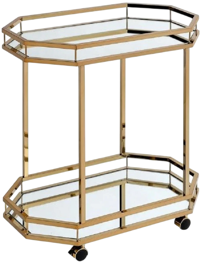 Show off your personality with the Lacole serving cart, featuring a metal frame finished in champagne and mirrored shelves for that glam appeal. The two 2.5 mm mirror shelves are the ideal place for placing your dishes and dining accessories.Read More