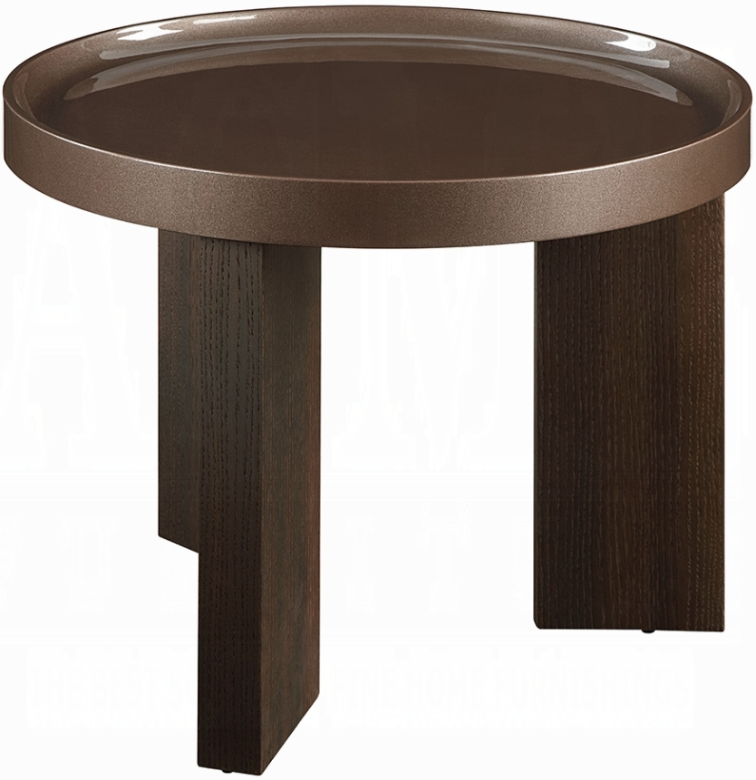 The Lakita end table showcases a sleek 24" round design with a striking high-gloss dark blond top and a smoked-oak base. Made from composite wood with white-oak veneer, it offers a perfect balance of modern style and durability. With a sturdy 50 mm-thick tabletop, it delivers both elegance and long-lasting performance.Read More