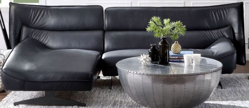 This is an incredible design with curved lines, combining metal and leather together to bring you a different sensation in the living room. The Maeko sectional embodies a stylish, deconstructed look that doesnŸ??t skimp on the fine details. This sofa is wrapped with high quality top grain leather and sits on sturdy metal legs.Read More