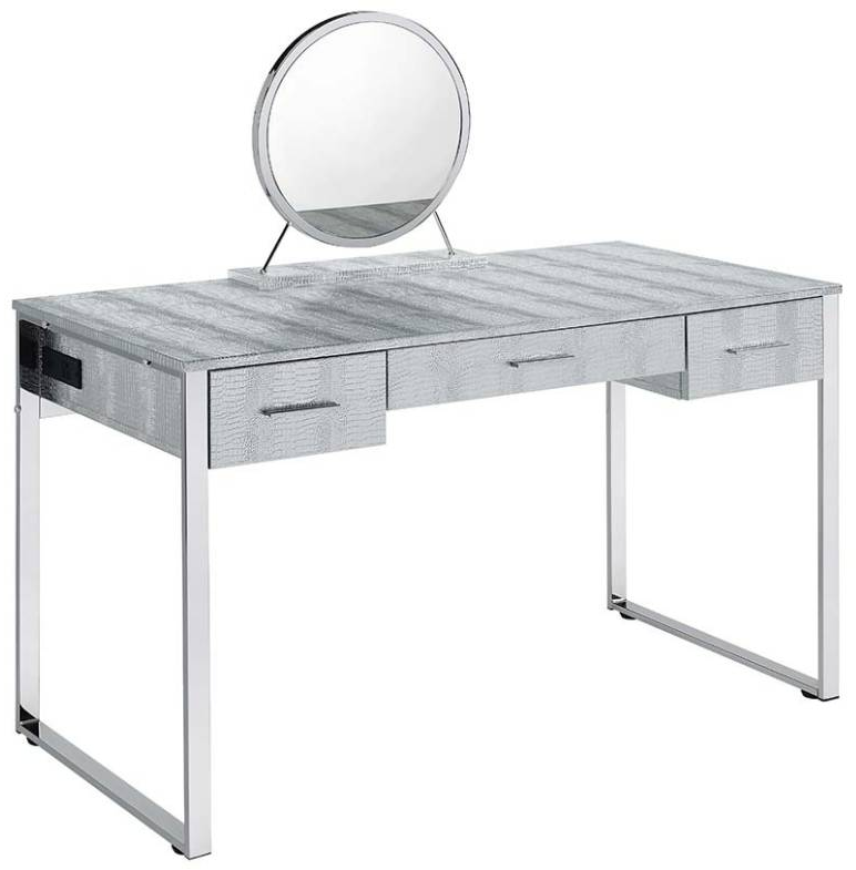 Make getting ready for a night out on the town fun with the Van chrome vanity set. From the beautifully faux crock textured case to the sturdy shiny chrome base make this a statement piece. The three ample drawers have enough room for beauty tools and supplies.Read More