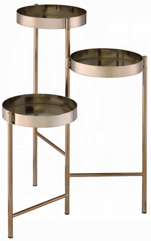 The ACME Furniture Namid gold plant stand is a foldable, multi-tiered metallic frame featuring three open round tiers supported by straight legs. Finished in lustrous gold, its industrial-modern aesthetic enhances both functionality and visual appeal—perfect for displaying greenery with a chic, space-saving design.Read More