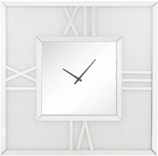 This Noralie square wall clock is covered in beveled mirrored panels that highlight its glamorous style. Featuring crushed acrylic faux diamonds that will naturally attract the eye. Durable engineered wood supports the frame. The clock face comes with a timeless roman numeral design.Read More
