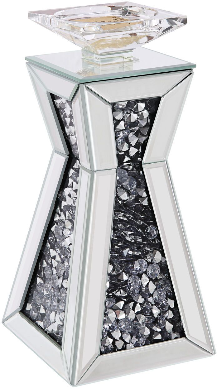 Strut your style with this beautiful and elegant Nowles candleholder collection. With a beautifully crafted mirrored frame and faux gem inlay, it is sure to compliment any arrangement. Available in two different sizes, light it up and be dazzled by the glamour of this piece.Read More