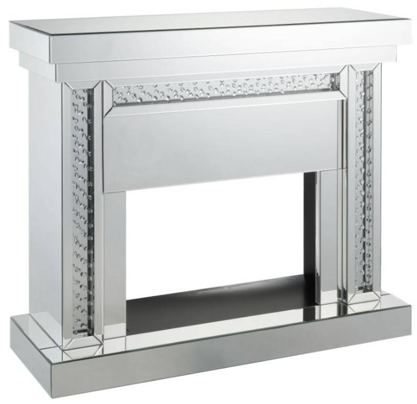 The ACME Furniture Nysa Mirrored Electric Fireplace combines modern elegance with functionality, featuring a mirrored finish, faux crystal inlays, and realistic LED flames. Its compact design offers warmth, style, and sophistication, enhancing any room’s ambiance effortlessly.Read More