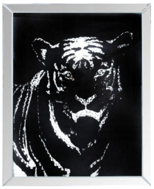 The Nevina crystal wall mirror is sure to be the focal point of any room. Dramatically cast with a tiger-shaped mirror that is the perfect contrast against a black background. Faceted optic glass crystals adorn the skill layering it with added luxe and brilliance.Read More