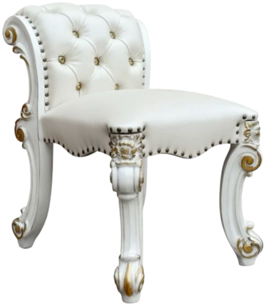 Tracing back to the classical Baroque era, expressed with intent and conviction, this Vendome vanity stool is donned in a pearl PU and an antique pearl finish that is richly accented with gold paint brushed onto the piece by hand.Read More