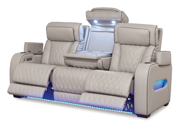 Ready to take your reclining experience to the next level? Then sit up and take notice. With this power reclining sofa, ultimate relaxation is at your fingertips. Experience the pure bliss of an air massage system and heated seats at the touch of a button. The center seat is crafted with a drop-down table with wireless charging and dual cup holders. Plus the luxurious diamond-stitched upholstery is easy on the eyes, adding elegance to any space.Read More