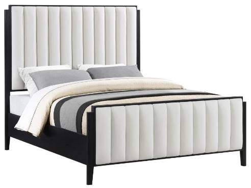 The elegant design features a tall headboard with vertical channeling, adding a refined texture to your bedroom. Crafted with attention to detail, this bed promises stability and a sophisticated aesthetic that enhances any décor. Available in queen, eastern king, and California king sizes, this bed ensures a comfortable and stylish sleep experience.
