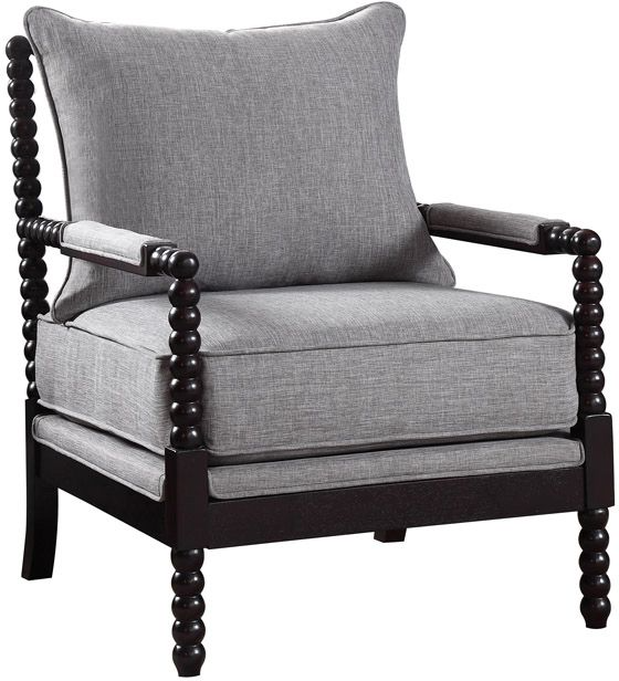 Careful attention to design detail brings a truly stylish look. Ornate elements on this accent chair offer an artistic feel that blends easily in a transitional space. A slender frame with a black finish features sweet beading to deliver romance and attitude.Read More
