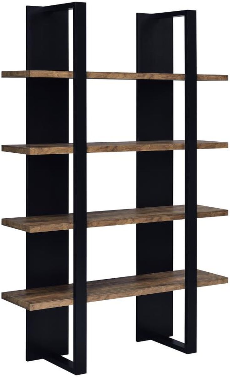 The Coaster® Bookcase features a frame in Black and contrasting shelves that are in a Aged Walnut finish. There are four total shelves for plenty of storage space.Read More
