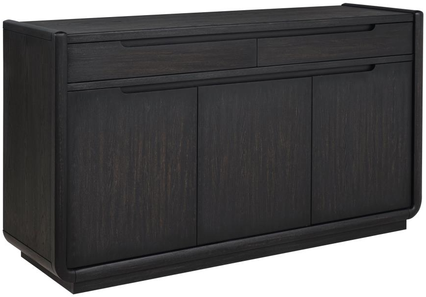 Dining sideboard in burnished black with sculpted edges and clean, recessed pulls