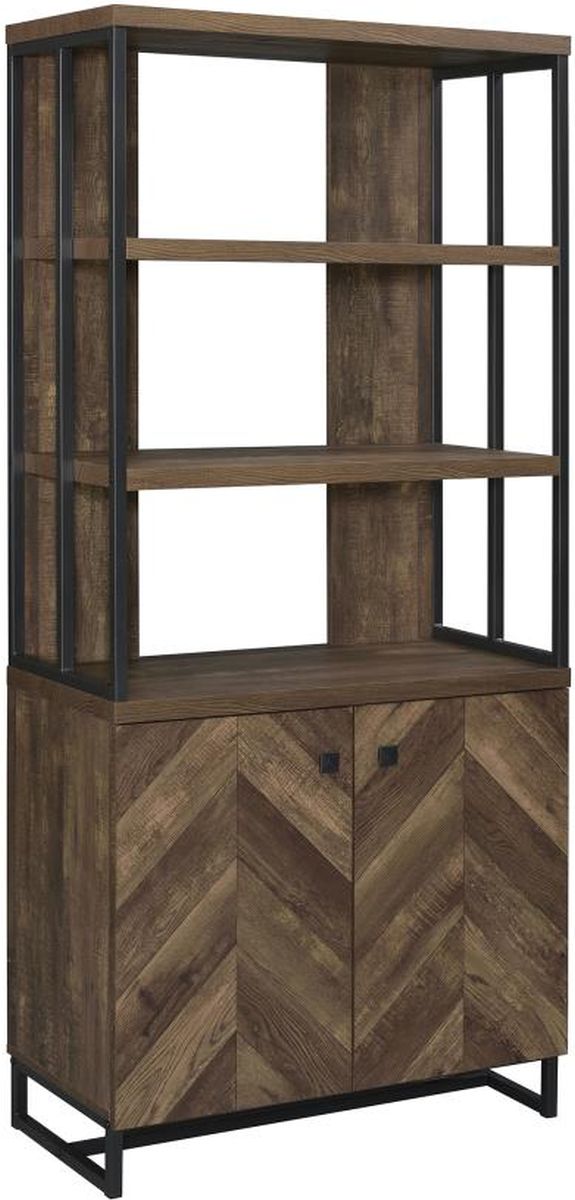The Coaster® Millbrook Bookcase features Rustic Oak color finish, the metal finish is Gunmetal, and the door fronts have a herringbone pattern. This bookcase features three shelves for plenty of storage space.Read More