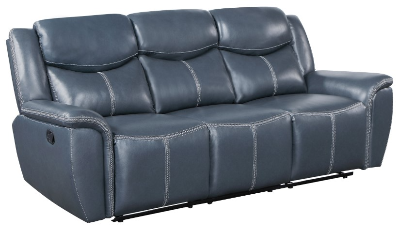 Motion reclining sofa upholstered in faux leather