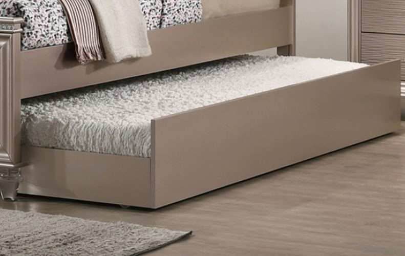 This trundle from the Allie collection is one the kids can grow with, adding even more accommodation space! The rose gold finish pairs well with any color, ensuring that this set will match whatever phase they encounter.Read More