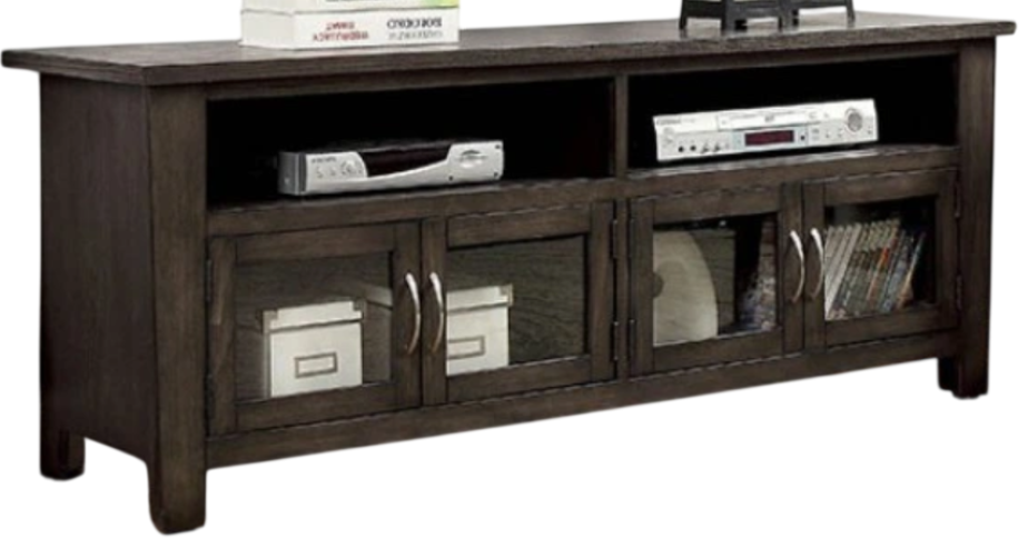 This transitional design feature copious open shelf space and dual cabinets allowing you to store away a number of items like movies and games. The large top can accommodate a large TV, and rear wire access ensures everything looks clean.Read More