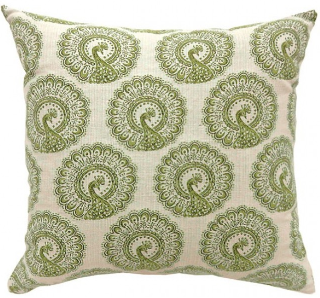 Seemingly circular patterns in this throw people actually are stylized peacock designs. With a clean ivory backdrop, it's a perfect piece for an art deco collection. This throw pillow adds extra comfort and support to sofas, chairs, or beds.Read More