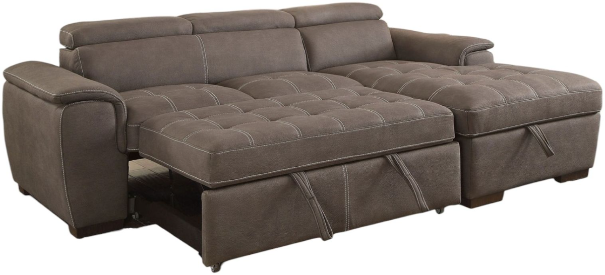 When looking for a functional piece to upgrade your home, look no further than this sectional! Designed with unparalleled comfort in mind, this piece enhances your comfort with adjustable headrests without taking away from the contemporary aesthetics. This multi-functional sectional provides the perfect place to stretch out and relax while also easily converting into a bed for guests. Decorated with contrast stitching for a modern look, this sectional is the perfect combination of comfort and style to make your home a chic gathering place for friends and family!