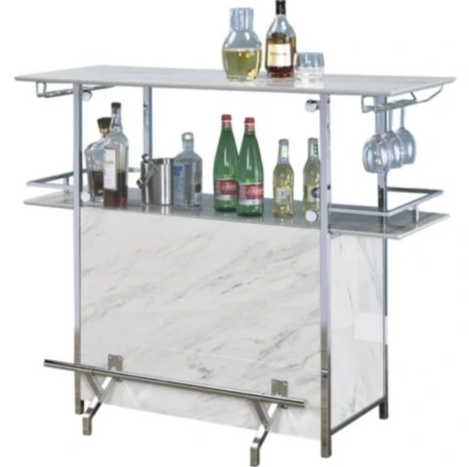 It's exquisite and petite, an elegant bar table to have stand at the ready. The natural-looking faux marble apperance makes it an attractive fit for any room. Convenience is fulflled with this functional retro piece with its lively appearance.Read More