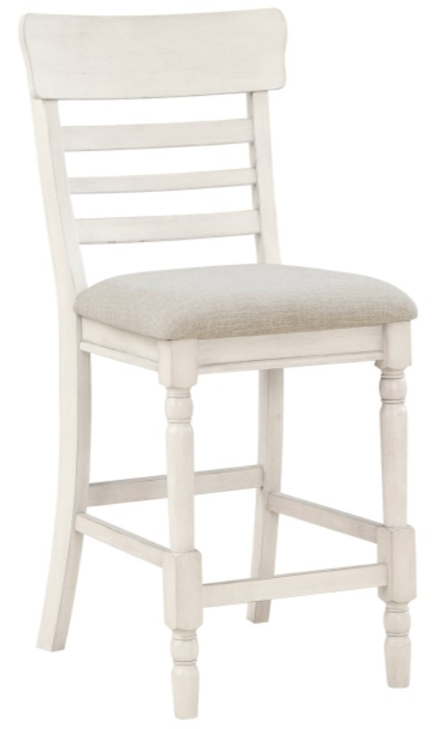 Styled to evoke a feeling of farmhouse living, the Alburgh collection’s design creates a perfect platform for your classic casual dining space. The counter height chairs feature padded seats which are covered in a light gray textured fabric, providing neutral accent to the collection and the chair’s antique white finish.Read More