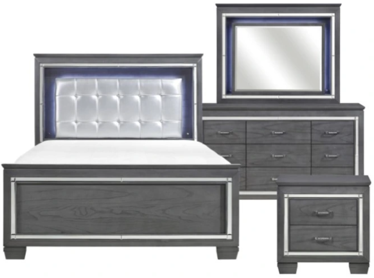 Glamour reigns in the design of the Allura collection. Framing each piece is a decorative beveled mirror accent that enhances the illumination from the touch-engaged LED backlight of the headboard and mirror, as well as the under-light of the night stand.Read More