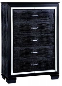 Glamour reigns in the design of the Allura Collection. Framing the chest is a decorative beveled mirror accent. Alligator embossing and high polished crystal-enhanced hardware boldly accent the black finish of the chest.Read More