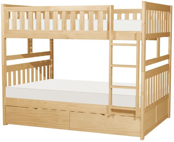 Maximizing sleep space is achieved with the stylish Bartly collection. This transitional full over full bunkbed is featured in a natural pine finish making it an appropriate choice for a number of youth bedroom settings.Read More