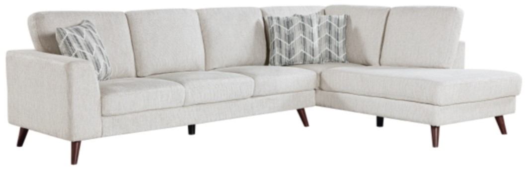 Add a touch of elegance and ample seating to your living space with this 2-piece sectional sofa with right chaise, designed to blend style and comfort effortlessly. Upholstered in soft, silver cloud fabric, this sectional features a sleek, modern look with clean lines and tapered wood legs that complement contemporary, mid-century.Read More