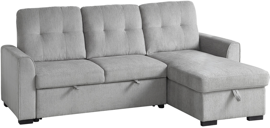 Conveniently stored beneath the sofa is a pull-out trundle that rises to create a bed while the top of the attached chaise opens to reveal under-seat storage. The chaise can be configured as right or left side placement based on the needs of your space.