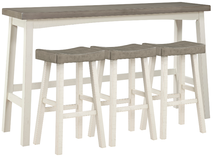 Stylistically versatile for placement in your home’s casual dining space, the transitional design of the included three 24-inch contour-seat barstools and 36-inch bar-height table is complemented with rusticated accent, subtle profile.Read More