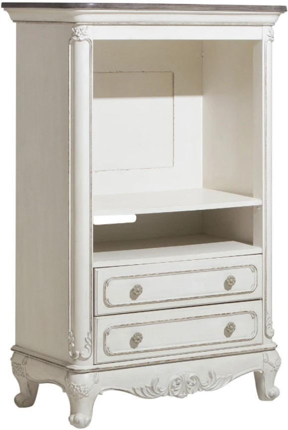 The Cinderella Collection is your little child’s dream come true. The Victorian styling incorporates floral motif hardware and traditional carving details on the white with gray rub-through finished TV armoire that will create the feeling of stepping into a fairy tale.Read More