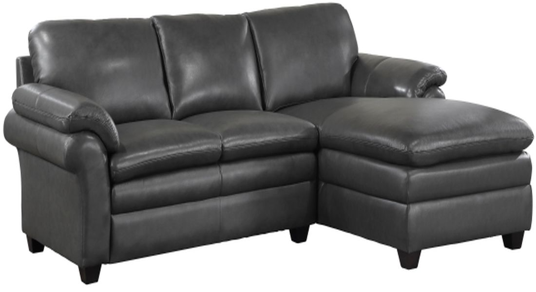 The plush seating of the Exton collection sectional provides ample space for your family and friends to gather in enveloping comfort. The sectional features a gray top-grain leather cover – with faux leather match – furthering the comfort of your seated experience. The collection is comprised of a right-side chaise, and left-side two-seater.Read More