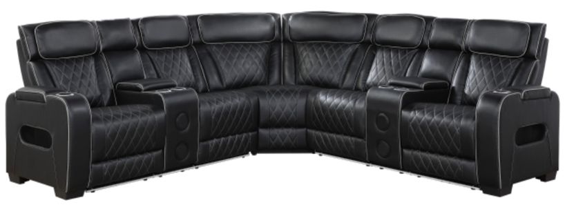 Transform your living room into a state-of-the-art entertainment hub with this high-tech, 3-piece power reclining sectional. Upholstered in a sleek and durable breathable faux leather, this sectional combines luxurious comfort with a full suite of modern conveniences.Read More