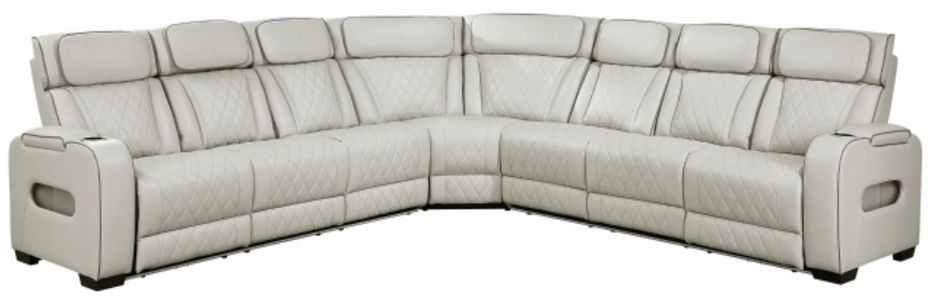 Elevate your living room into the ultimate entertainment zone with this high-tech, 3-piece power reclining sectional. Upholstered in a sleek and durable breathable faux leather, this sectional combines luxurious comfort with a full suite of modern conveniences. Enjoy personalized relaxation with one-touch power controls for both reclining and power-adjustable headrests.ower-adjustable headrests.Read More