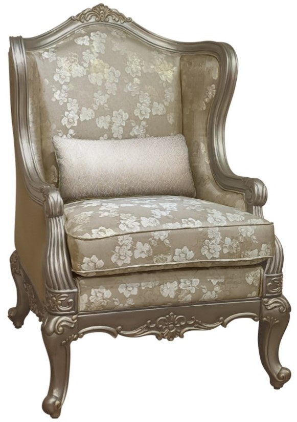 With details such as shell and acanthus leaf scrolling, routed pilaster and cabriole legs, the traditional look of the chair is solidified. The accenting faux silk toss pillows feature traditional fringe detailing and a complementing detail pattern. The series 8412 Florentina seating and occasional collections complement the Homelegance series 1867 Florentina bedroom and dining collections.