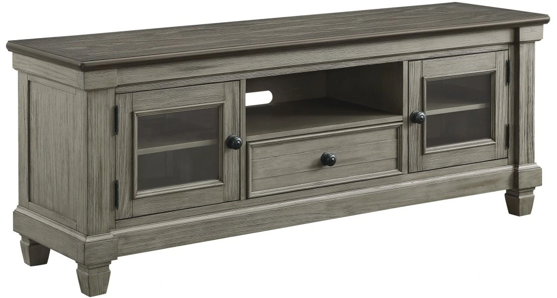 Inspired by the aesthetic of a casual country home and providing ample storage space for your media accessories is the 64-inch TV Stand of the Granby collection. The two-tone look of the acacia and pine solids base, finished in antique gray, and the oak veneer of the unit’s coffee-finished top.Read More