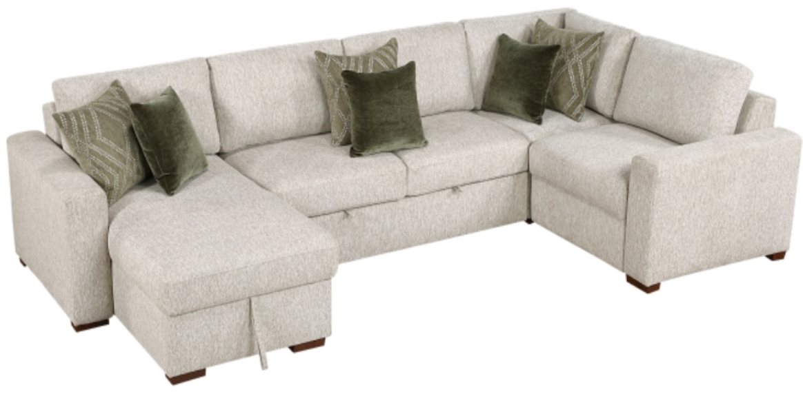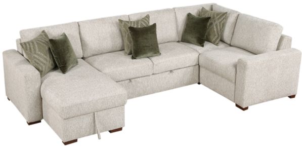 Transform your living space with the adaptable and comfortable 4-piece sectional featuring a convenient pull-out bed and a chaise with hidden storage. Upholstered in a soft yet durable textured microfiber, this modular design includes a comfortable 1-seater, a space-saving corner seat, a versatile 2-seater with a hidden pull-out bed, and a chaise offering discreet storage.Read More