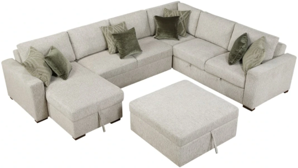 Maximize both seating and functionality in your living space with this versatile 5-piece sectional featuring a convenient pull-out bed, a chaise with hidden storage, and a rolling storage ottoman.Read More