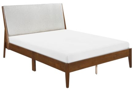 Subtle mid-century modern inspiration drives the design and lends a classic profile to the modern lines of the Jasper collection. The full-size low-profile wood-framed bed features a chestnut finish, its warm hue a perfect complement to the light gray chenille fabric upholstered headboard.Read More